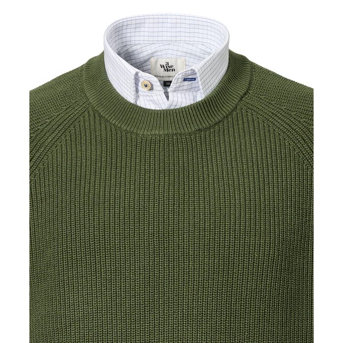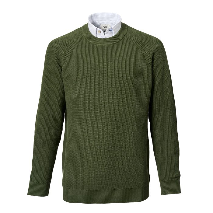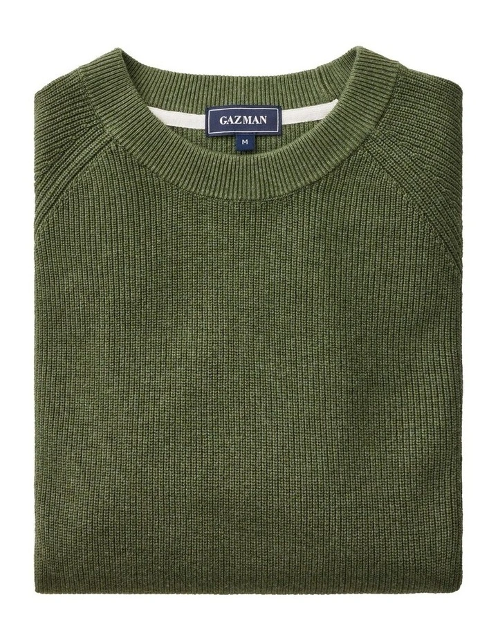 Cotton Raglan Crew Knit Sweater in Moss (M)