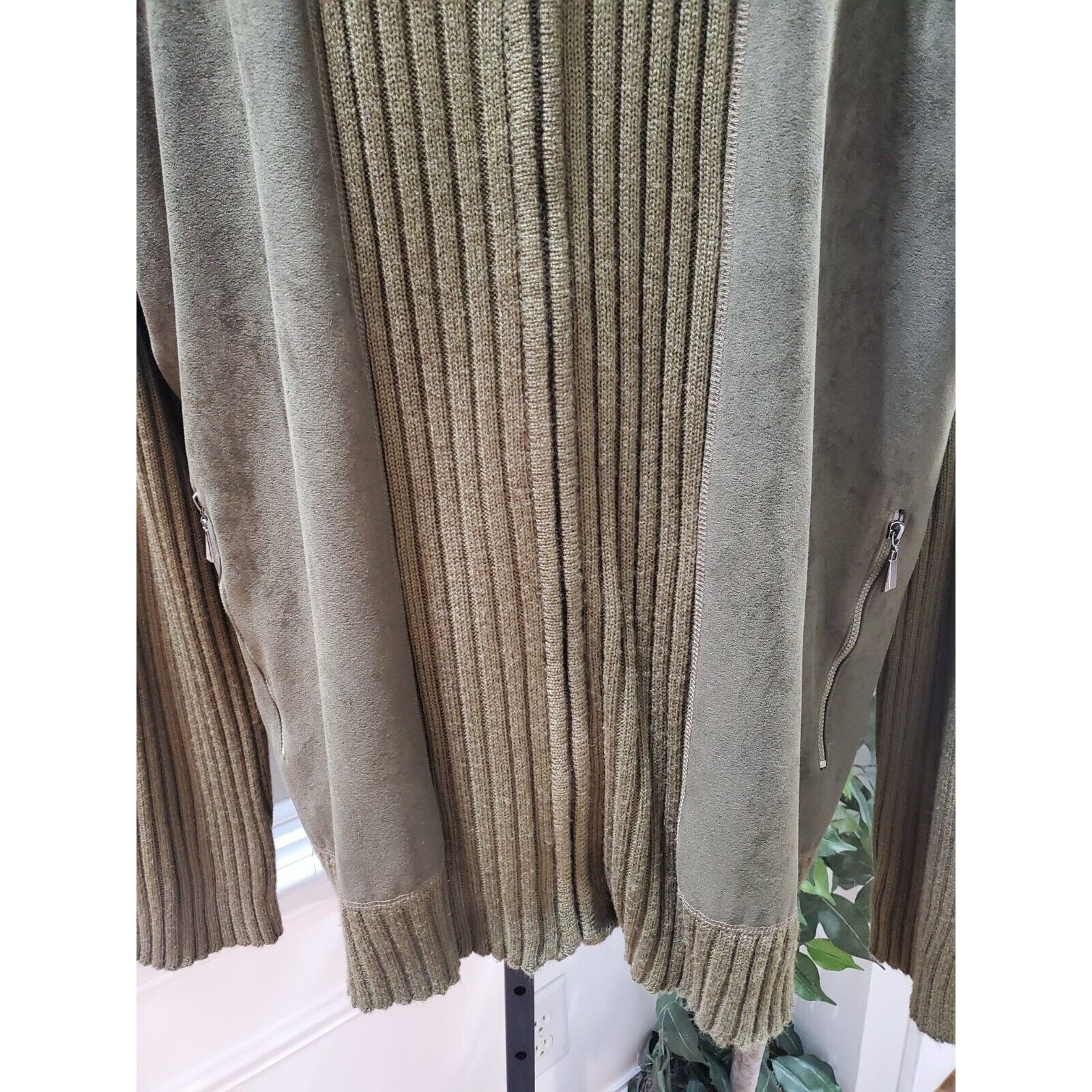 Men’s Olive Green 100% Acrylic High Neck Long Sleeve Full Zip Knit Sweater (M)