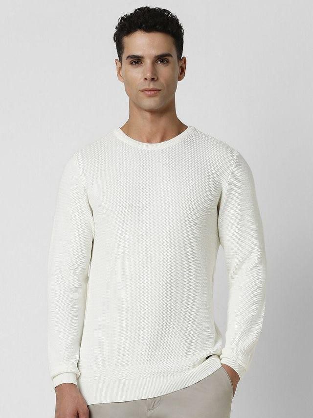 Textured Cotton Regular Fit Men Sweater (L)