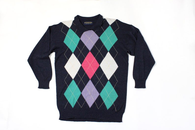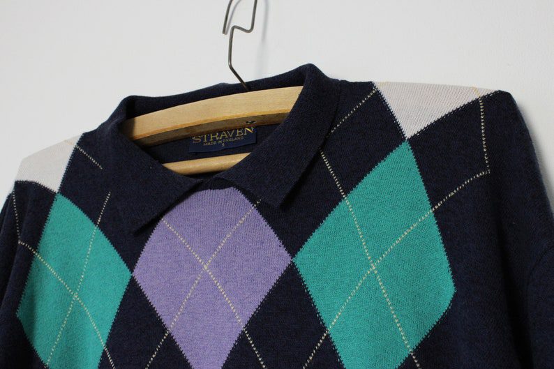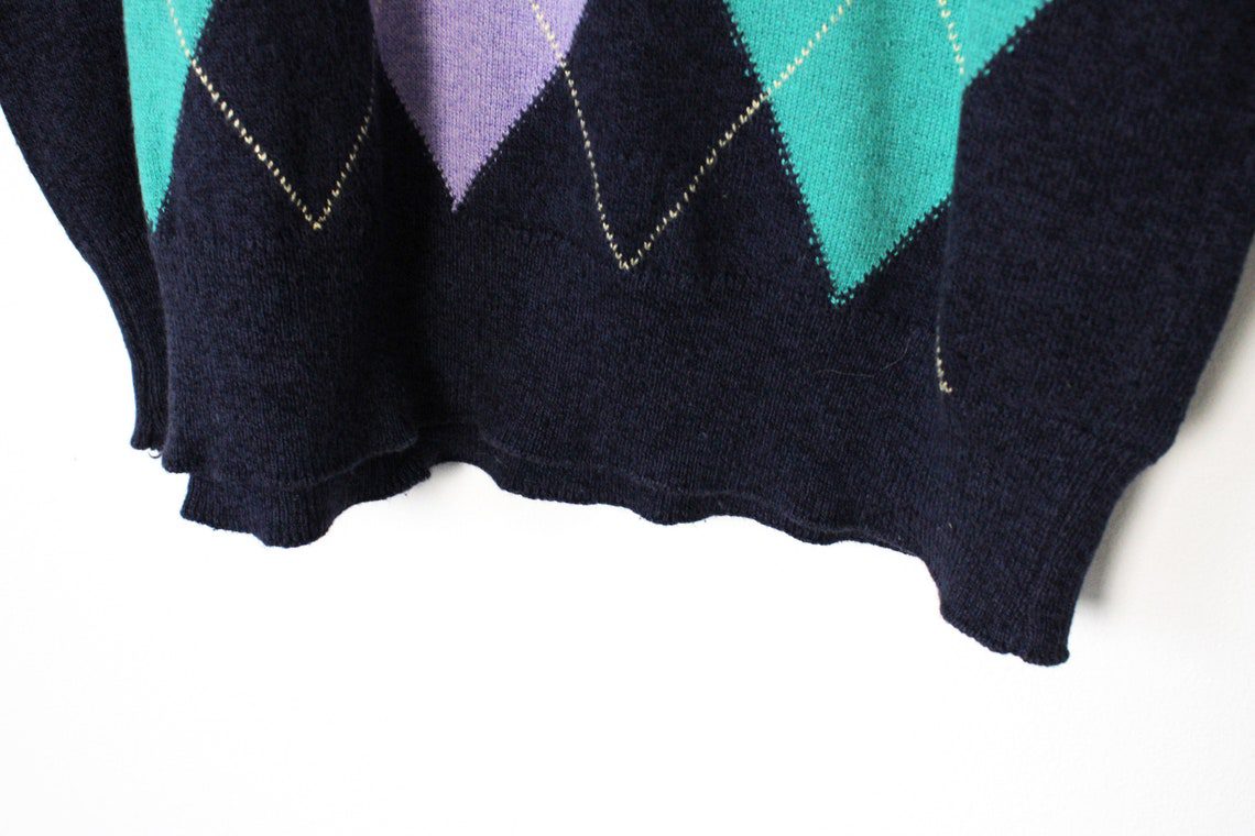 Vintage Argyle Knit Sweater – 80s 90s Cotton Blend Sweatshirt (S)