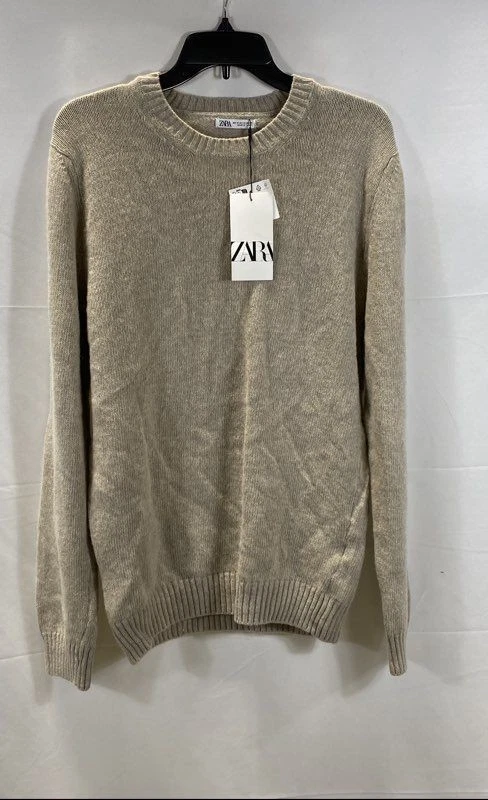 ZARA tan gold shimmer crew neck long sleeve light weight pullover sweater (S)